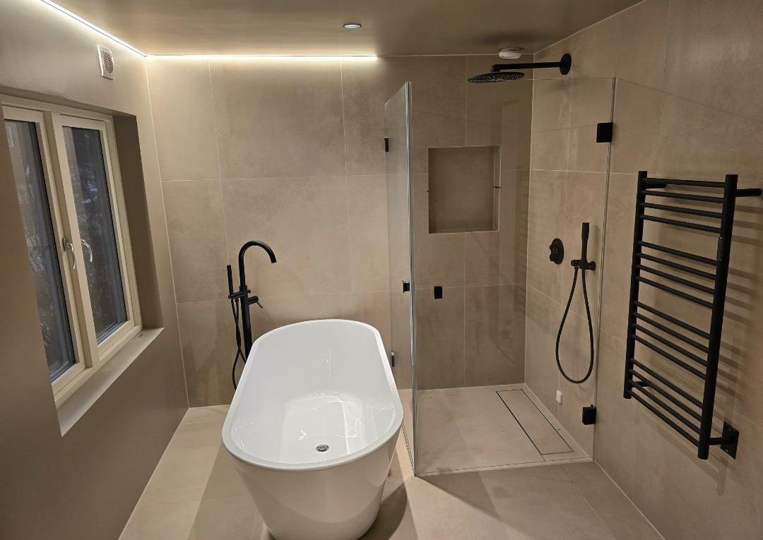Vi bygger og pusser opp bad etter våtromsnormen, med rør-i-rør-system og kvalitetsmaterialer. Du får et bad som både ser bra ut – og holder lenge.
